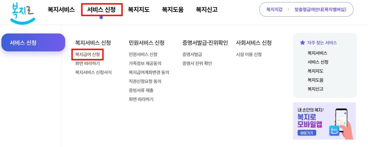 ▶ 인터넷 신청 - 복지로 https://www.bokjiro.go.kr 로그인 후